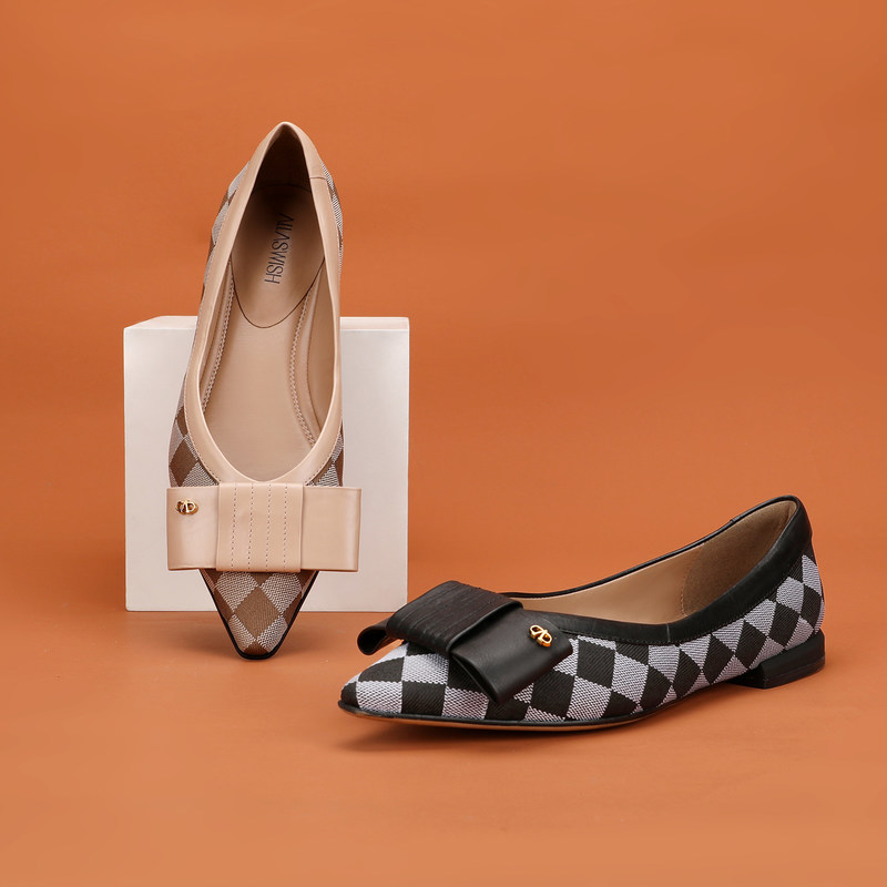 অফিসের জন্য নরম এবং লাইটওয়েট মহিলা ফ্ল্যাট লেদার জুতা প্লেড প্যাটার্ন